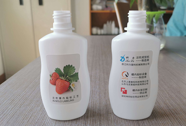 由于模內貼標技術具有以上優勢,已廣泛應用于注塑機,擠吹中空成型機,PET吹瓶機等領域,用于日化、食品、醫藥包裝等產品的表面裝飾。模內貼標技術自動生產系統主要由伺服注吹機、模具、標簽和機械手整合而成,因此以上要素影響著生產系統的效率和質量。